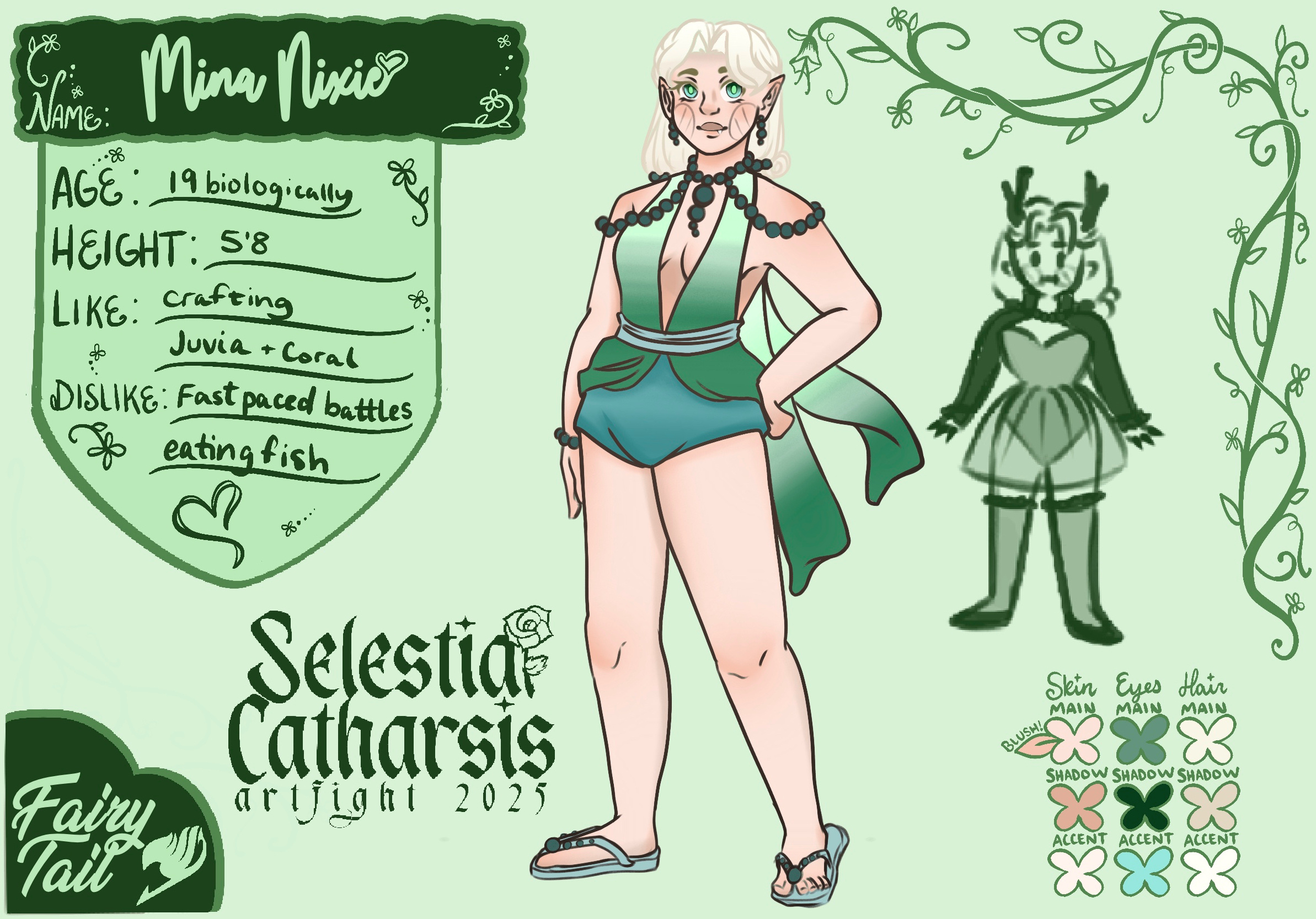 Mina is my oldest oc and my main oc for fairy tail! She is a water dragon slayer and her exceed is coral!