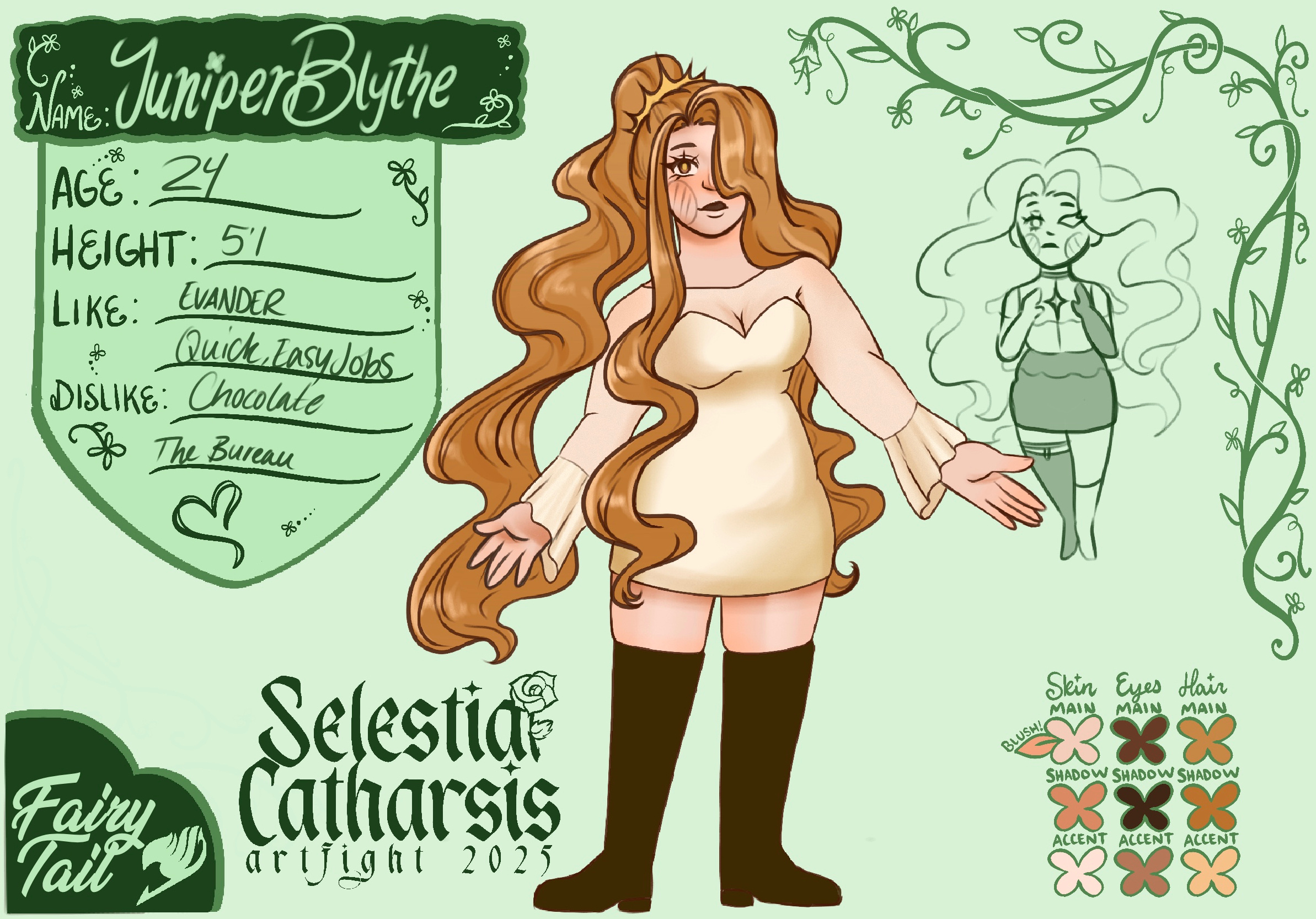 juniper and evander are newer ocs but i love them haha. Juniper is the sister of evergreen and she is married to evander!