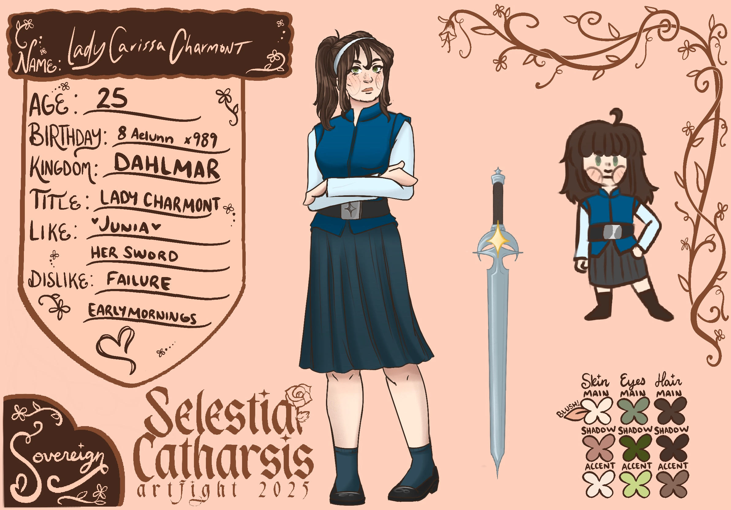Junia- Oldest daughter of colfield family. she works as an archivist in the royal archives although she mostly works the library desk due to seniority. She is childhood friends with the charmonts and has a romantic relationship with carissa charmont.