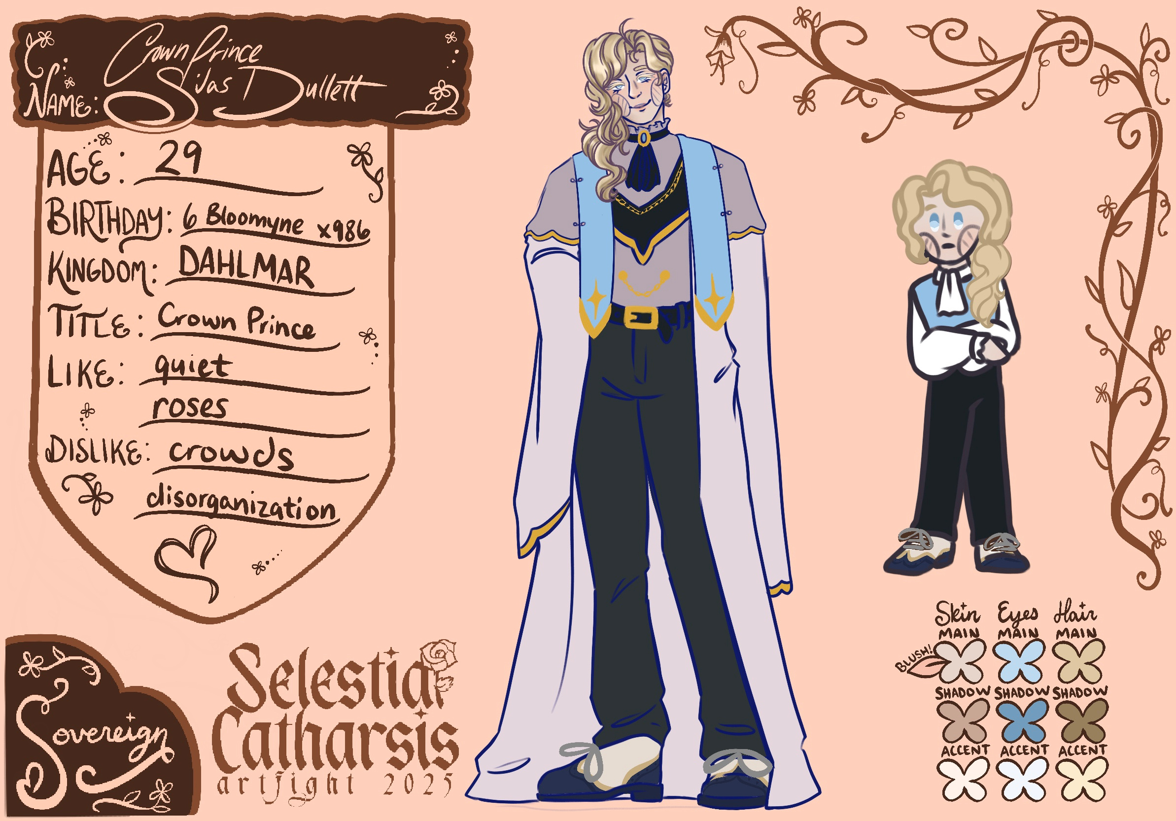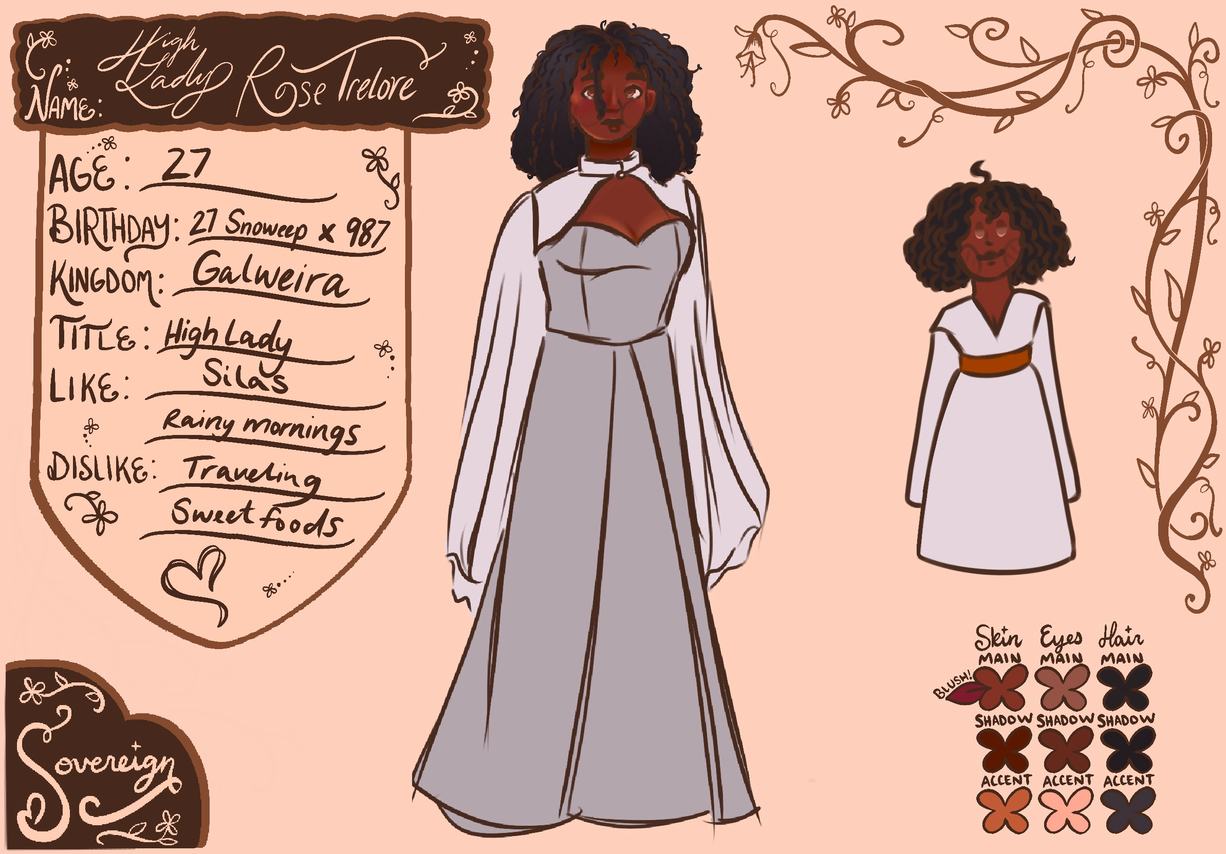 ʜᴏʙʙʏ: Playing lute casuallyꜱʜᴏʀᴛ ʙᴀᴄᴋꜱᴛᴏʀʏ: Rose is the youngest twin of the Galweiran throne, her older brother and twin, Reed, being the heir. She spends most of her time trying to be useful to the throne, despite not being the heir. She does not have a bad relationship with her family, just a lot of internalized self-doubt that has led to this. She is under the care of her aunt and cousin, Viridia and Lillie. As Viridia is a Galweiran Governor, Rose participates in a lot of the governor activities. Most people around believe her parents are quietly preparing her for a role as a governor after her brother ascends to the throne.Rose is in a secret relationship with Silas Dullett, the Dahlmaran Heir, however, relationships between royals is heavily discouraged and has been for generations.